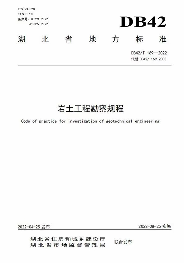 近期,湖北省住房和城鄉(xiāng)建設(shè)廳、湖北省市場(chǎng)監(jiān)督管理局聯(lián)合發(fā)布了《巖土工程勘察規(guī)程》DB42/T 169-2022(以下簡(jiǎn)稱《規(guī)程》),并將于2022年8月25日起正式實(shí)施。